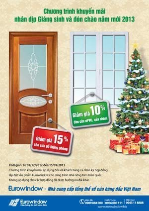 Từ 1/12/2012 đến 15/1/2013, Eurowindow triển khai chương khuyến mãi giảm giá