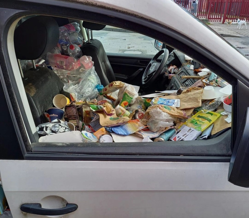 Nhóm cảnh sát sau đó đều phải “choáng váng” trước khối lượng rác khổng lồ bên trong xe, gồm các hộp đồ ăn nhanh, chai rỗng và cả đồ ăn vặt rơi vãi khắp nơi.