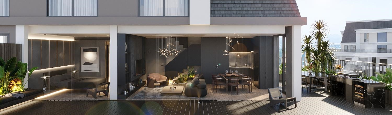 Các căn penthouse này còn thừa hưởng đặc quyền kết nối trực tiếp với các tiện ích trên không như: cầu kính, bể bơi vô cực, phòng tập gym, yoga…