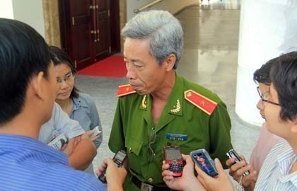 Thiếu tướng Phan Anh Minh - Phó Giám đốc Công an TP.HCM trả lời báo chí giờ giải lao phiên họp