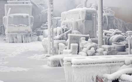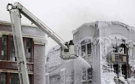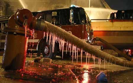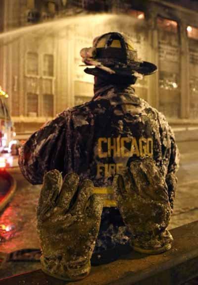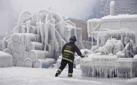 Khoảng 200 nhân viên cứu hỏa tại thành phố Chicago (Mỹ) đã mất nhiều giờ vật lộn với một đám cháy khổng lồ khi nước dùng để dập lửa lại biến thành lớp băng dày bao phủ tòa nhà xảy ra hỏa hoạn. Ngay cả xe chữa cháy và các thiết bị dập lửa cũng bị đóng băng.