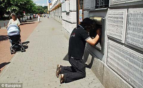 Trong khi một máy ATM khác cũng nằm trên đường phố của thị trấn, lại quá thấp, chỉ ngang với mặt đường và nếu muốn lấy được tiền, các khách hàng cần phải quỳ gối xuống đất.