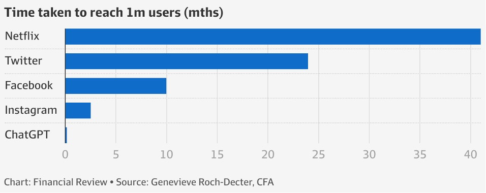 Sau khi ChatGPT được phát hành vào ngày 30 tháng 11 năm 2022, mọi người nhanh chóng nhận ra rằng sự tồn tại của nó kéo là một hiện tượng công nghệ, trở thành công cụ sử dụng có số lượng người tham gia trong một thời gian ngắn, đạt mốc 1 triệu người dùng chỉ sau 5 ngày ra mắt so với các công nghệ khác phải mất hàng tháng, hay nhiều năm để có được số lượng người dùng tương đương.