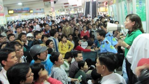 Gương mặt phờ phạc sau khi chen lấn trong “biển người” để mua vé, anh Lê Hải Trọng, quận Tân Bình bực bội: “Nghỉ làm, đến đây rồi họ mới thông báo ngày 27/12 âm lịch sẽ bán vào ngày 14/1. Mà đến lúc đó chưa chắc đã có vé nếu cả ngàn người cứ chen lấn kiểu này”.