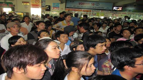 miền Đông, quận Bình Thạnh để mua vé về quê. Quá nhiều người kéo đến quầy vé