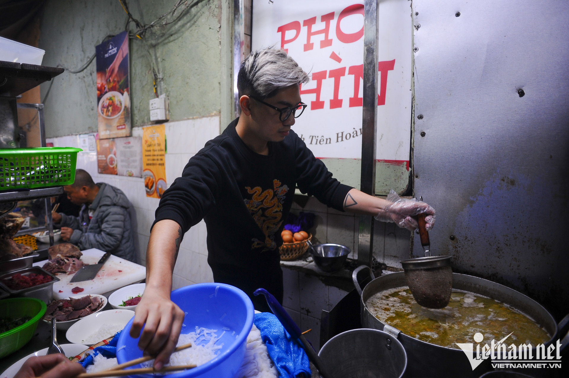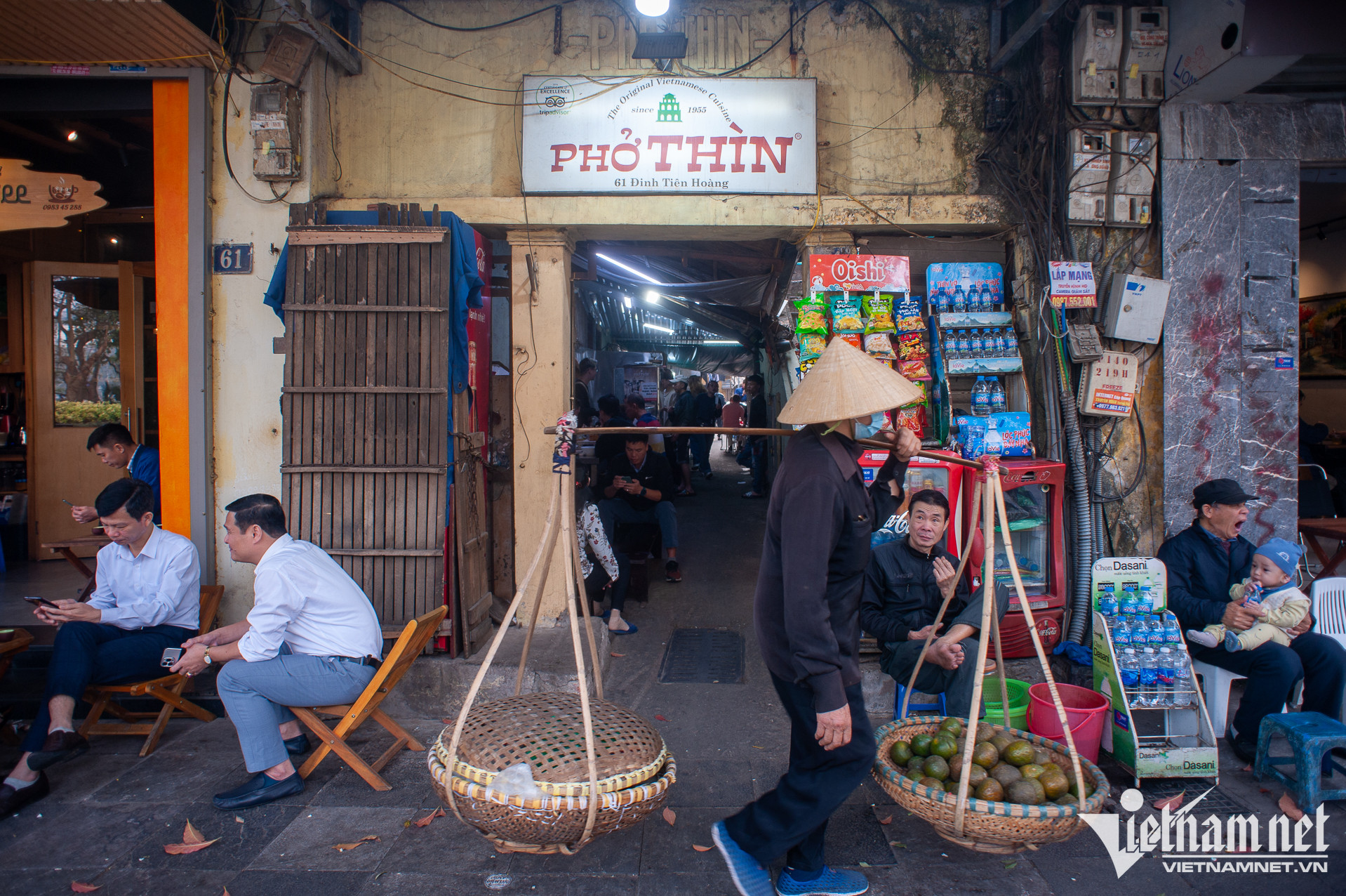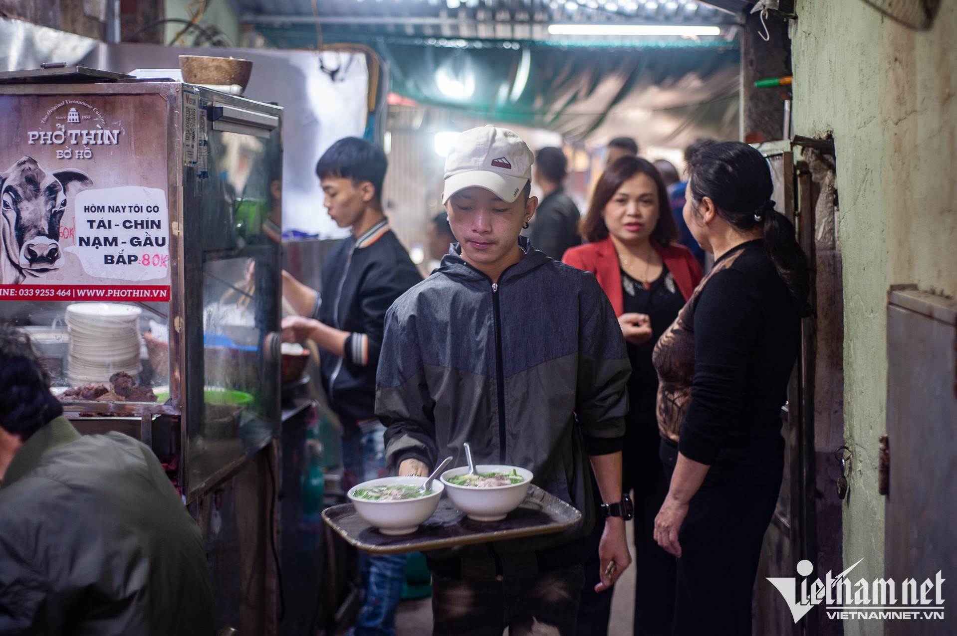 Nằm trong con ngõ nhỏ số 61 Đinh Tiên Hoàng (Hoàn Kiếm, Hà Nội), Phở Thìn đã trở thành địa chỉ thân thuộc của nhiều người dân Thủ đô và du khách. Quán nhỏ, cũ kĩ, khác xa những hàng quán trong khu vực. Nhưng, mỗi ngày, quán vẫn đón vài trăm lượt thực kháchKhung giờ sáng, trưa, hai dãy bàn của quán chật kín thực khách. Con ngõ vốn đã nhỏ, thời điểm đông khách, di chuyển qua lại càng khó khăn. Thế nhưng, người dân trong ngõ cũng đã quen với điều đó suốt 68 năm quaPhở Thìn tại Đinh Tiên Hoàng được thành lập năm 1955 bởi cụ Bùi Chí Thìn (1928-2001). Hiện nay, quán do cháu đích tôn nhà họ Bùi, là anh Bùi Chí Thành (34 tuổi) tiếp quản. Xuyên suốt ba đời, quán vẫn phục vụ phở tái, chín, nạm, gầu với nước dùng trong veo, mang hương vị truyền thống. Ngày nay, để phân biệt với hàng chục cửa hàng gắn biển "phở Thìn" mọc khắp thành phố, thực khách quen gọi nơi này là "Phở Thìn Bờ Hồ"Năm 2015, khi sức khỏe bố mẹ yếu dần, anh Thành gác lại công việc thiết kế đồ họa - kinh doanh cà phê để về phụ bố mẹ quản lý quán phở gia truyền. Hai năm sau, anh chính thức đứng bếp, trở thành người tiếp quản đời thứ ba của phở Thìn Bờ Hồ. "Gia đình tôi chưa từng dạy công thức phở cho người ngoài. Ông nội dạy cho bố tôi và các chú. Sau này, bố lại chỉ dạy cho tôi. Chúng tôi chỉ bán phở, không bán thương hiệu", anh chia sẻTheo anh Thành, phở Thìn mang đặc trưng của phở Hà Nội xưa và đến nay, vợ chồng anh vẫn cố gắng giữ gìn hương vị đó. Nước dùng phở không sử dụng quế, hồi, nước mắm, thay vào đó là bỏ thêm gừng, các gia vị thông thường. "Tùy theo lượng xương, thịt mỗi ngày, tôi sẽ gia giảm và ninh nước dùng trong thời gian phù hợp. Lớn lên cùng quán phở của gia đình, giờ đây, tôi chỉ nhìn màu sắc hay ngửi mùi cũng đoán được độ đậm, nhạt của nồi nước cốt", anh Thành cho biết