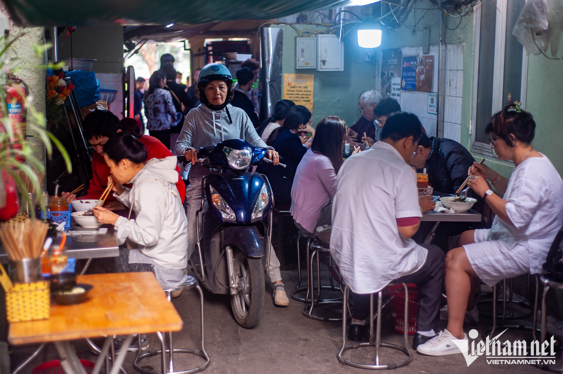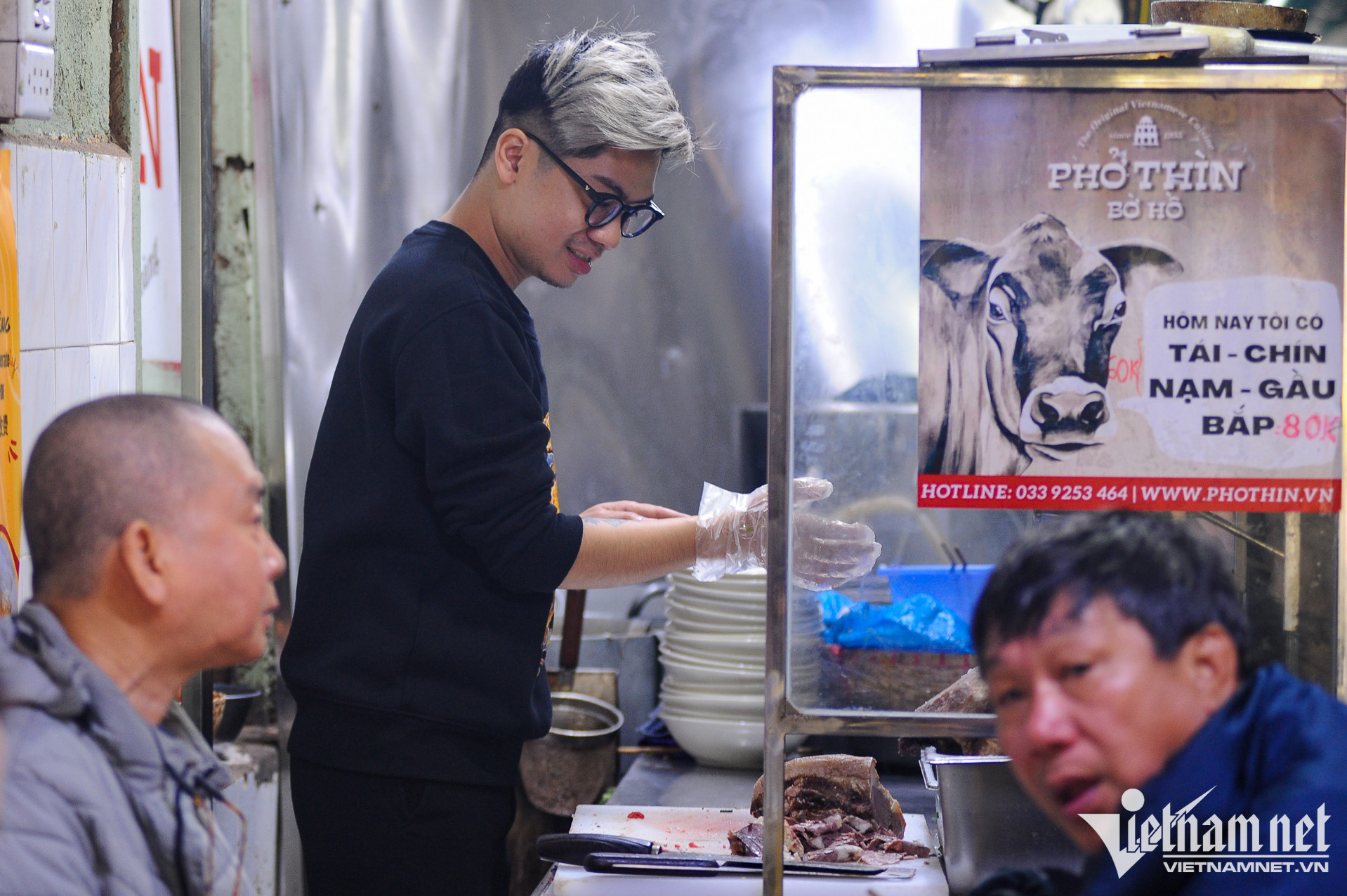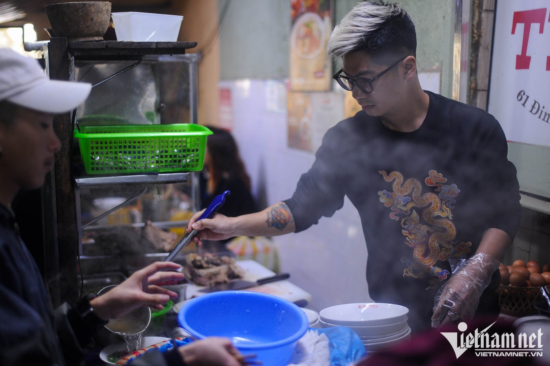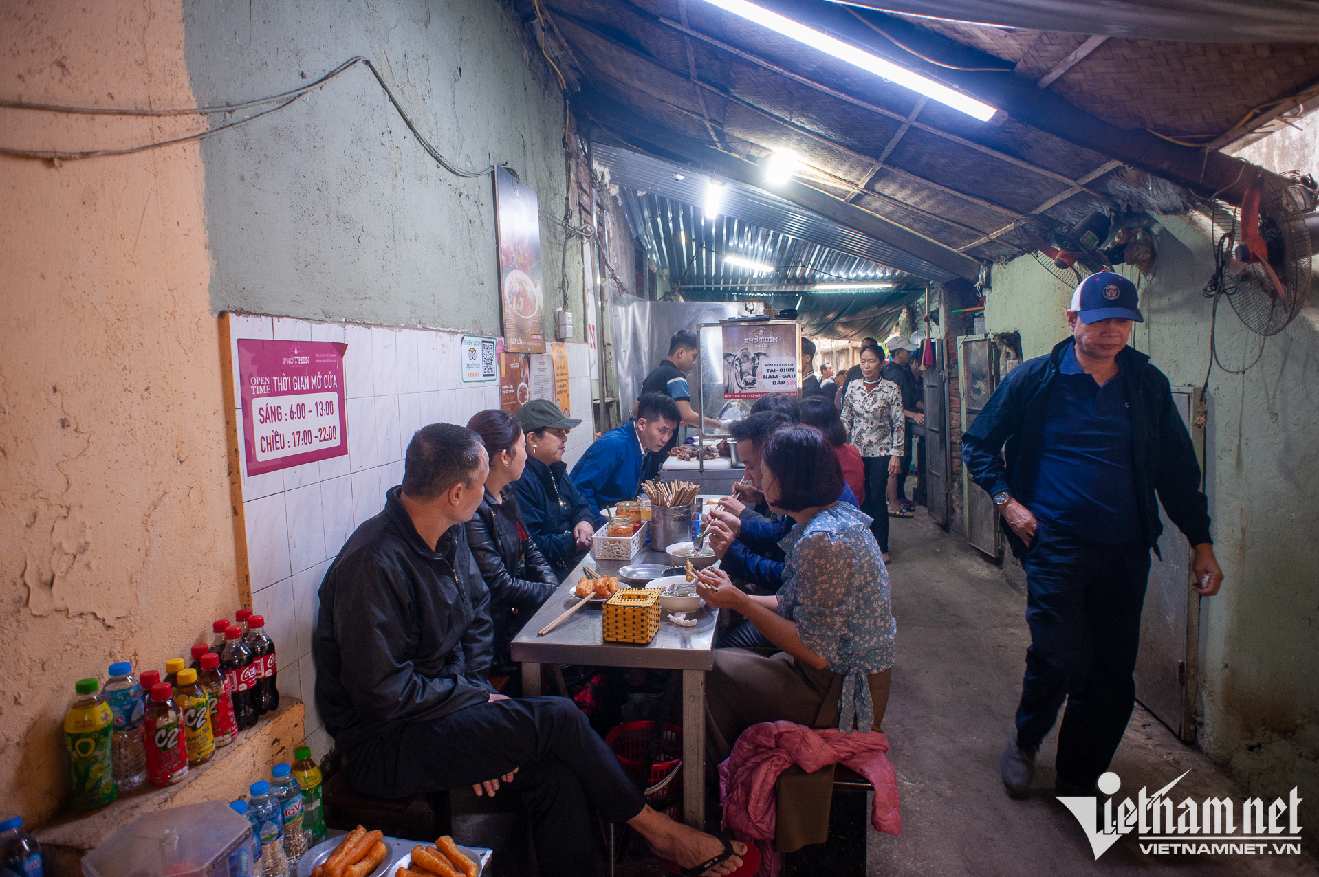 Nằm trong con ngõ nhỏ số 61 Đinh Tiên Hoàng (Hoàn Kiếm, Hà Nội), Phở Thìn đã trở thành địa chỉ thân thuộc của nhiều người dân Thủ đô và du khách. Quán nhỏ, cũ kĩ, khác xa những hàng quán trong khu vực. Nhưng, mỗi ngày, quán vẫn đón vài trăm lượt thực kháchKhung giờ sáng, trưa, hai dãy bàn của quán chật kín thực khách. Con ngõ vốn đã nhỏ, thời điểm đông khách, di chuyển qua lại càng khó khăn. Thế nhưng, người dân trong ngõ cũng đã quen với điều đó suốt 68 năm quaPhở Thìn tại Đinh Tiên Hoàng được thành lập năm 1955 bởi cụ Bùi Chí Thìn (1928-2001). Hiện nay, quán do cháu đích tôn nhà họ Bùi, là anh Bùi Chí Thành (34 tuổi) tiếp quản. Xuyên suốt ba đời, quán vẫn phục vụ phở tái, chín, nạm, gầu với nước dùng trong veo, mang hương vị truyền thống. Ngày nay, để phân biệt với hàng chục cửa hàng gắn biển "phở Thìn" mọc khắp thành phố, thực khách quen gọi nơi này là "Phở Thìn Bờ Hồ"Năm 2015, khi sức khỏe bố mẹ yếu dần, anh Thành gác lại công việc thiết kế đồ họa - kinh doanh cà phê để về phụ bố mẹ quản lý quán phở gia truyền. Hai năm sau, anh chính thức đứng bếp, trở thành người tiếp quản đời thứ ba của phở Thìn Bờ Hồ. "Gia đình tôi chưa từng dạy công thức phở cho người ngoài. Ông nội dạy cho bố tôi và các chú. Sau này, bố lại chỉ dạy cho tôi. Chúng tôi chỉ bán phở, không bán thương hiệu", anh chia sẻTheo anh Thành, phở Thìn mang đặc trưng của phở Hà Nội xưa và đến nay, vợ chồng anh vẫn cố gắng giữ gìn hương vị đó. Nước dùng phở không sử dụng quế, hồi, nước mắm, thay vào đó là bỏ thêm gừng, các gia vị thông thường. "Tùy theo lượng xương, thịt mỗi ngày, tôi sẽ gia giảm và ninh nước dùng trong thời gian phù hợp. Lớn lên cùng quán phở của gia đình, giờ đây, tôi chỉ nhìn màu sắc hay ngửi mùi cũng đoán được độ đậm, nhạt của nồi nước cốt", anh Thành cho biết