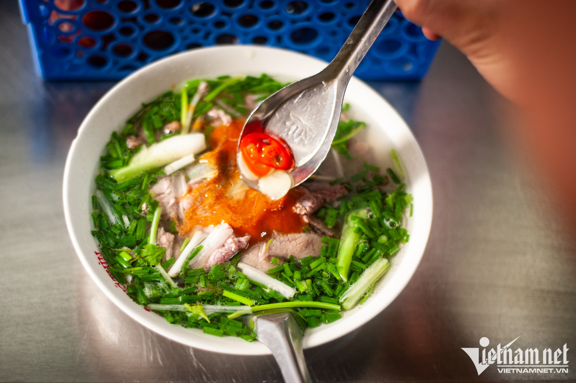 Anh Thành bật mí, để có bát phở ngon, gia đình anh sử dụng loại thịt bò già nhưng phải tươi. "Bây giờ, nhiều nơi dùng các loại thịt bò non - thịt mềm, chín nhanh. Nhưng tôi vẫn đặt riêng thịt của những con bò già. Loại thịt này ngọt, ngon, khiến nước dùng đậm đà hơn", anh nói. Khoảng 4 giờ sáng, xương, thịt bò tươi sẽ được lò mổ vận chuyển tới nhà anh Thành. Vợ chồng anh và nhân viên sẽ sơ chế và cho vào nồi để nấu nước dùng