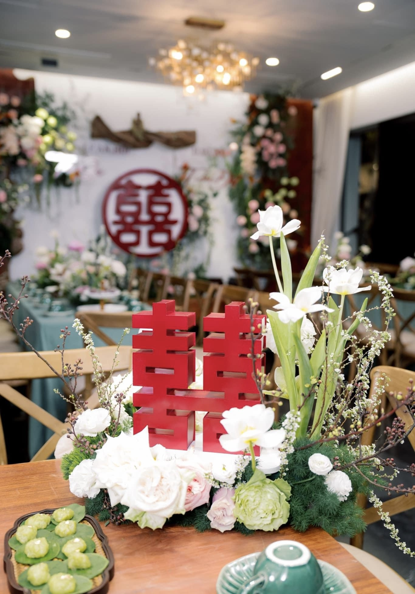 Đặng Tiểu Tô Sa - cháu ngoại cố PGS Văn Như Cương - đăng tải hình ảnh tổ chức đám hỏi bên chồng sắp cưới. Không gian khu vực làm lễ trang trí nhiều hoa tươi theo tông màu đỏ - xanh chủ đạo. Cốm xào, hạt sen, hoa quả, bánh kẹo, cỗ bàn được chuẩn bị kỹ càng.