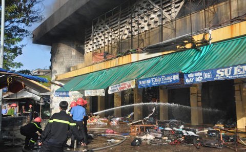| Đám cháy đã thiêu rụi gần như hoàn toàn hàng hóa của các hộ kinh doanh trong chợ |
