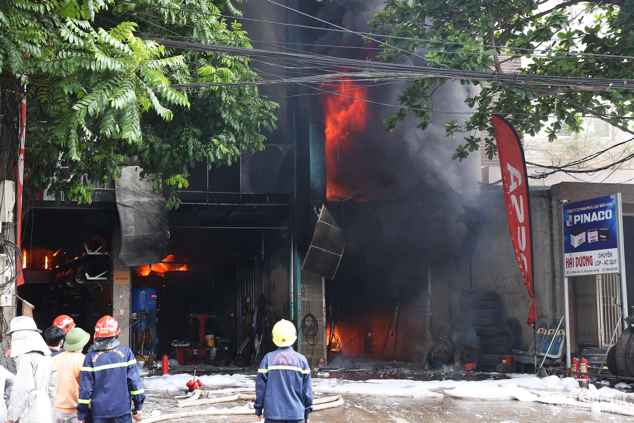 Theo lực lượng chữa cháy, việc dập lửa gặp nhiều khó khăn do bên trong cơ sở có chứa nhiều lốp ô tô nên bắt cháy nhanh.