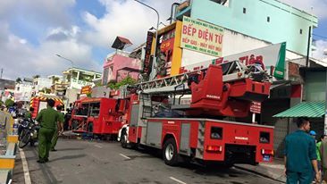 Đại tá Lê Tấn Bửu - Giám đốc Cảnh sát PCCC TPHCM xác nhận vụ cháy xảy ra khoảng 3g45 sáng nay. Lực lượng CSPCCC với hàng chục chiến sĩ, nhiều xe nước được điều đến hiện trường dập lửa.