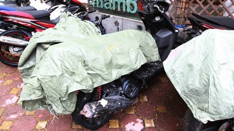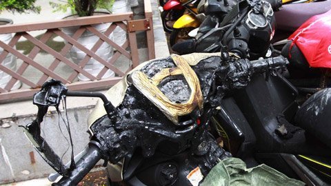| Nhiều xe máy bị cháy xém được chuyển ra ngoài. |