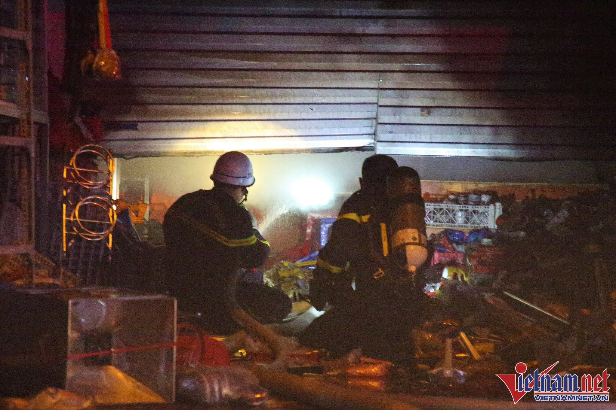 Đến 22h57, ngọn lửa chỉ còn cháy âm ỉ sâu bên trong nhà. Lực lượng Cảnh sát PCCC tiếp tục dập tàn.