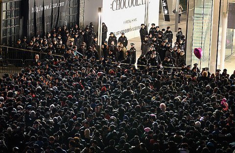 | Hàng nghìn người chen nhau xếp hàng mua iPhone tại Apple Store Thượng Hải - Trung Quốc (ảnh: Sina) |