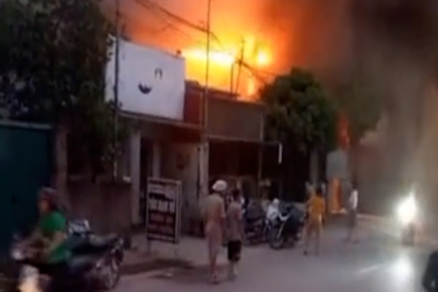 Lực lượng chức năng nhận định, kho bị cháy thuộc Công ty cổ phần Yasuky Việt Nhật. Bên trong kho có nhiều chất dễ cháy như quạt điện... khiến công tác dập lửa gặp nhiều khó khăn. Ngọn lửa bùng lên dữ dội và lan sang cửa hàng kinh doanh mây tre đan ở liền kề.