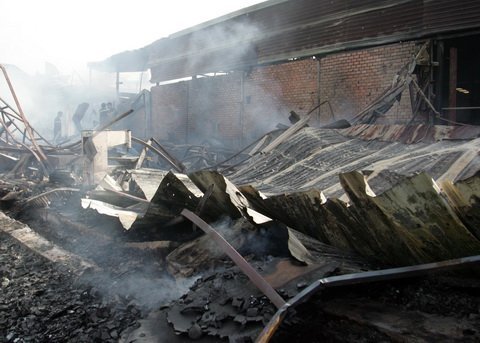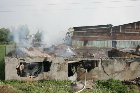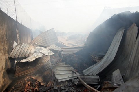 | Hiện trường vụ cháy sau khi dập lửa. |