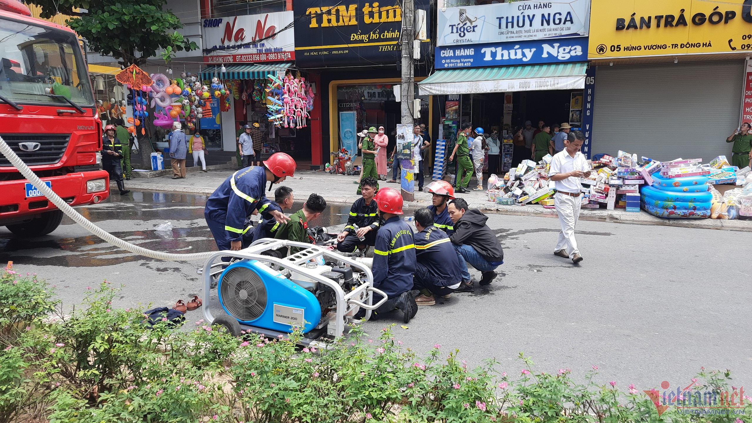 Trưa nay (15/6), nhiều người dân phát hiện cột bốc lên từ tầng 3 của một cửa hàng đồ chơi trên đường Hùng Vương nên báo với cơ quan chức năng.