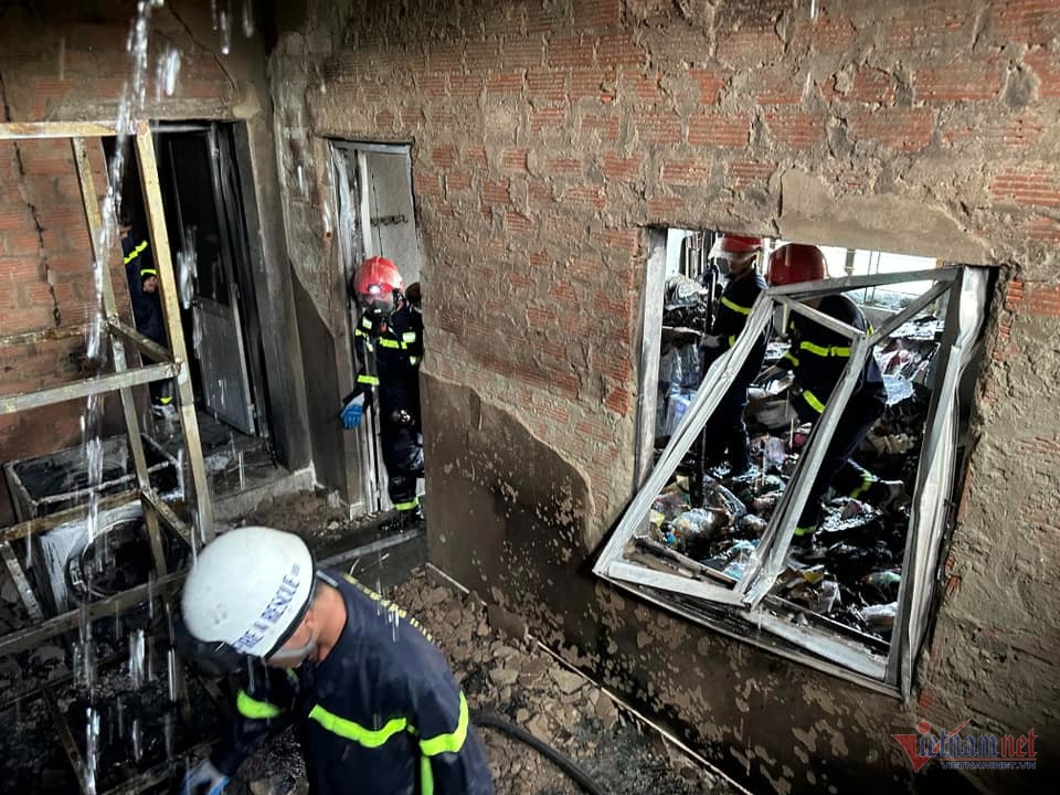 Tầng 1 có nhiều đồ chơi trẻ em lấp kín lối lên dập lửa nên lực lượng chức năng phối hợp với người dân khẩn trương di dời đồ đạc dễ cháy ra khỏi căn nhà để các chiến sĩ vào dập lửa.