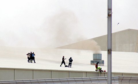 Từ xa có thể nhìn rõ những cột khói nghi ngút bốc lên từ trung tâm thương mại, nơi đã được sơ tán toàn bộ. Xe cứu thương và xe cảnh sát phong tỏa các lối vào khu phức hợp mua sắm.