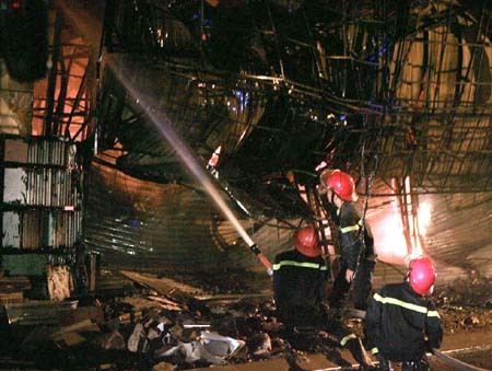 | Lực lượng cứu hỏa dập cháy. Ảnh: Thống Nhất-TTXVN. |