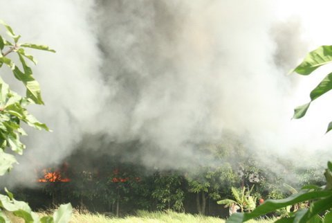 Một “hàng rào” gồm công an phường, quận và dân phòng đã ngăn chặn không cho bất cứ ai tiếp cận hiện trường. Tất cả đều phải đứng bên ngoài trong khi bên trong ngọn lửa và khói bốc lên ngút trời. Mùi khét của cao su bị cháy, lan tỏa nồng nặc vào khu dân cư.