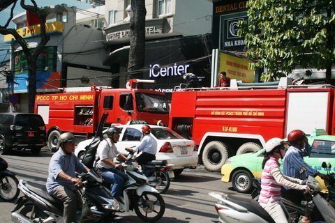 | Đám cháy gây kẹt xe trên đường Cao Thắng. |