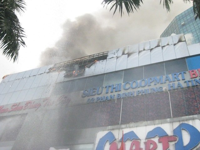 Đến khoảng 11h40, ngọn lửa cơ bản được khống chế, toàn bộ người trong Trung tâm thương mại cũng như Siêu thị đã được đưa ra an toàn.