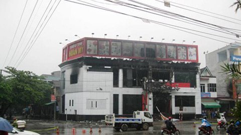 | Siêu thị Hoàn Mỹ bị tổn thất nặng nề sau vụ cháy (Ảnh: Lao động) |