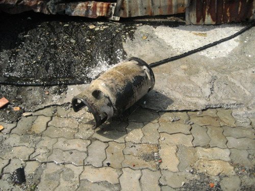 | Một bình gas may mắn không phát nổ |