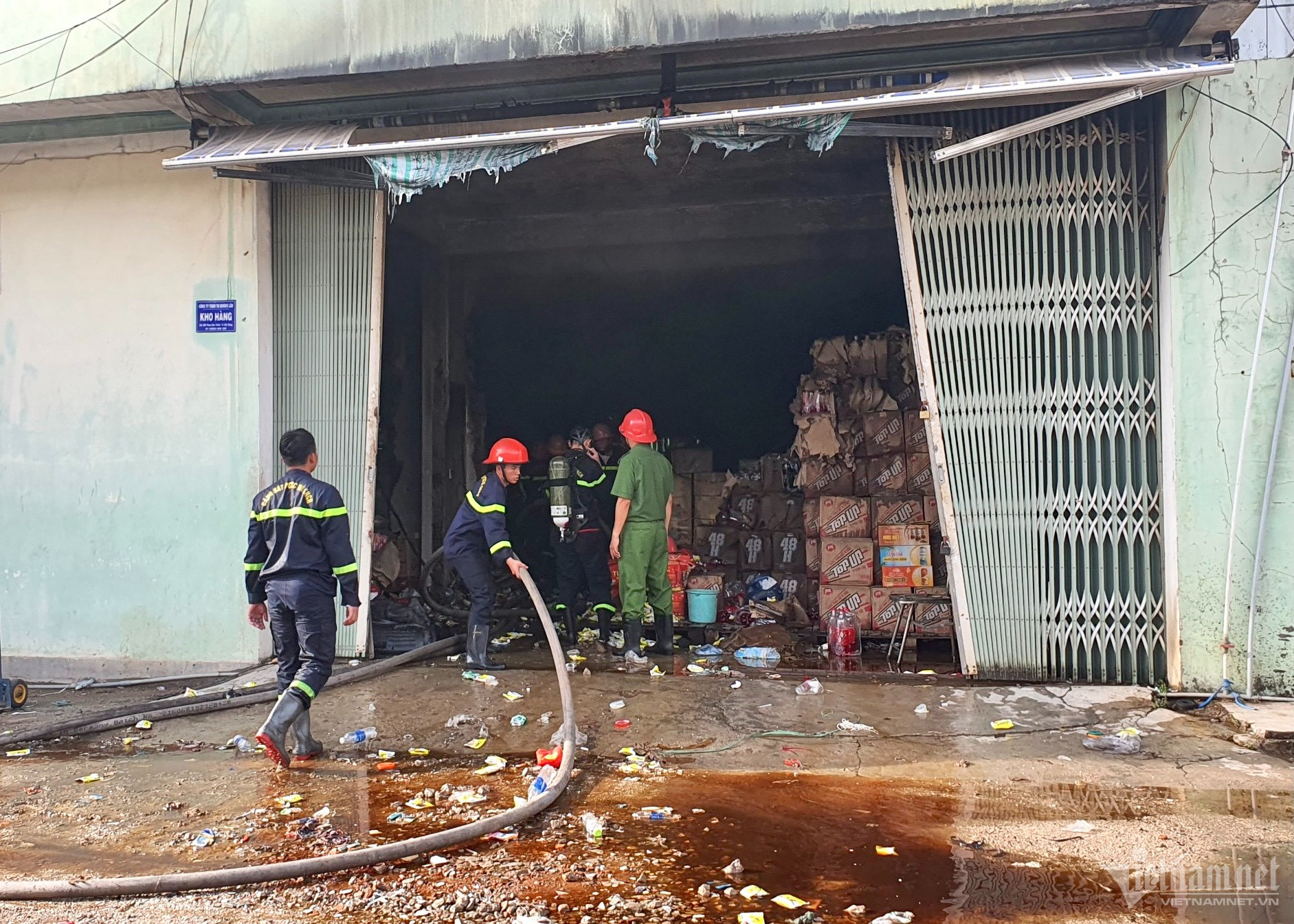 Do nhà kho này chứa các mặt hàng nhu yếu phẩm, mì gói, bánh kẹo… nên ngọn lửa lan nhanh và lan ra khu vực để xe điện 4 bánh.