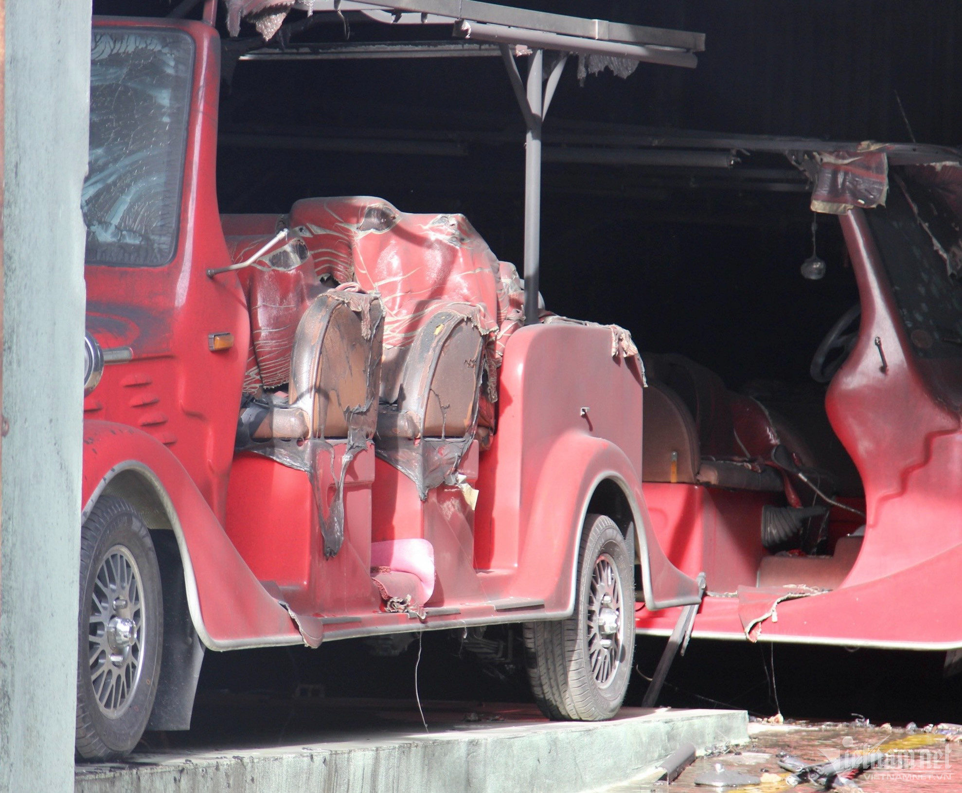 Tuy nhiên, rất nhiều nhu yếu phẩm, mì tôm, bánh kẹo, các thùng đựng nước yến, nước ngọt đã bị cháy rụi; hàng chục xe điện 4 bánh bị cháy hư hỏng nặng.