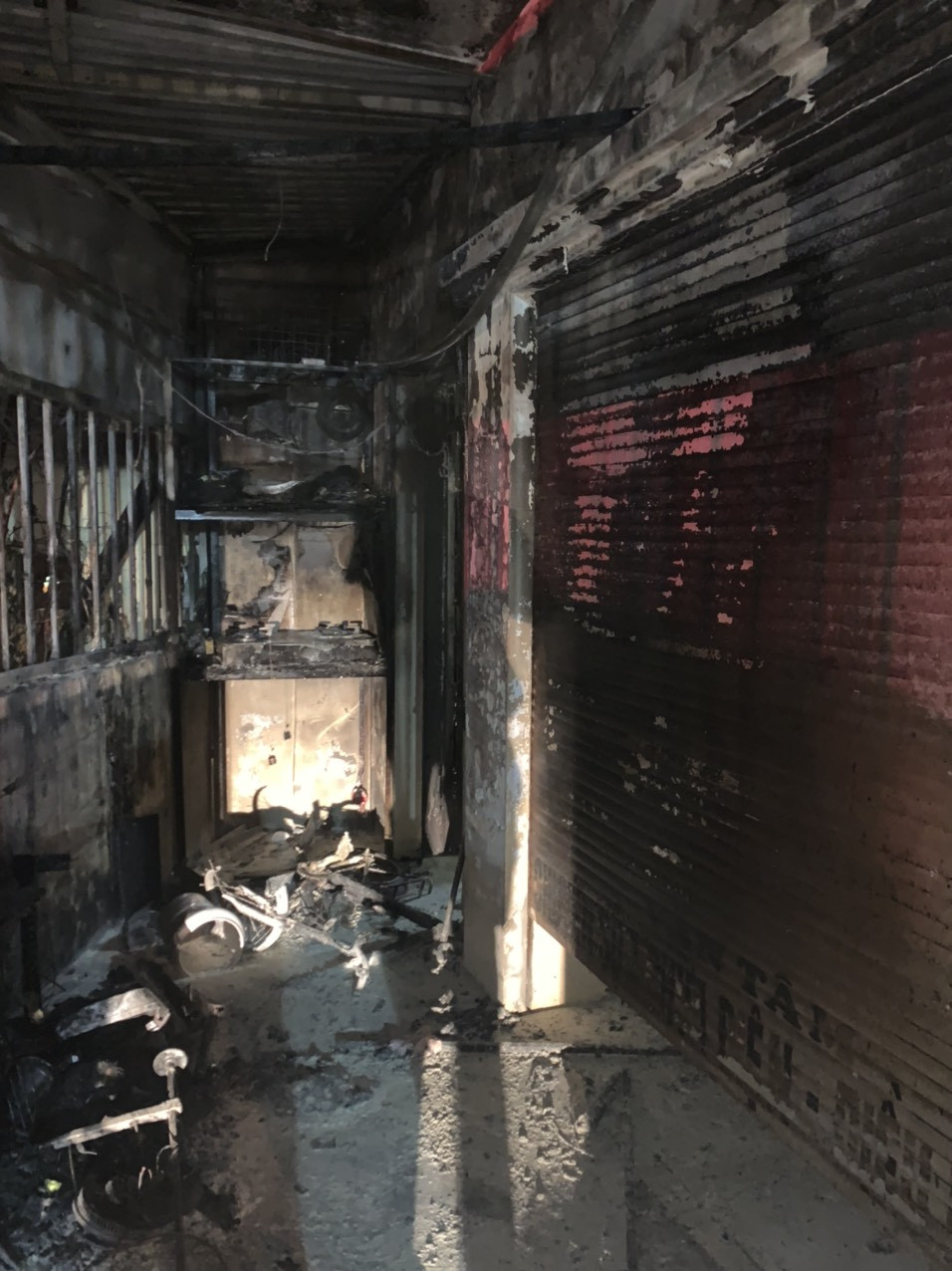 Qua trinh sát, đám cháy xuất phát tại tầng 1 ở khu vực cơi nới của ngôi nhà. 5 người trong gia đình gồm 1 người già, 2 vợ chồng và 2 trẻ em chạy lên khu vực tầng mái của ngôi nhà hô hoán kêu cứu.