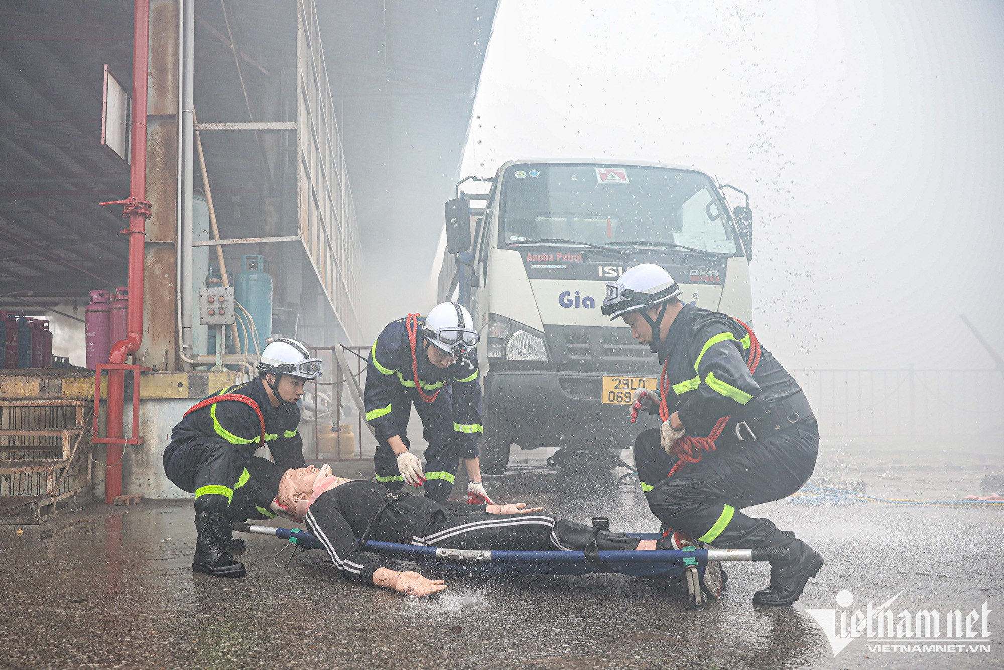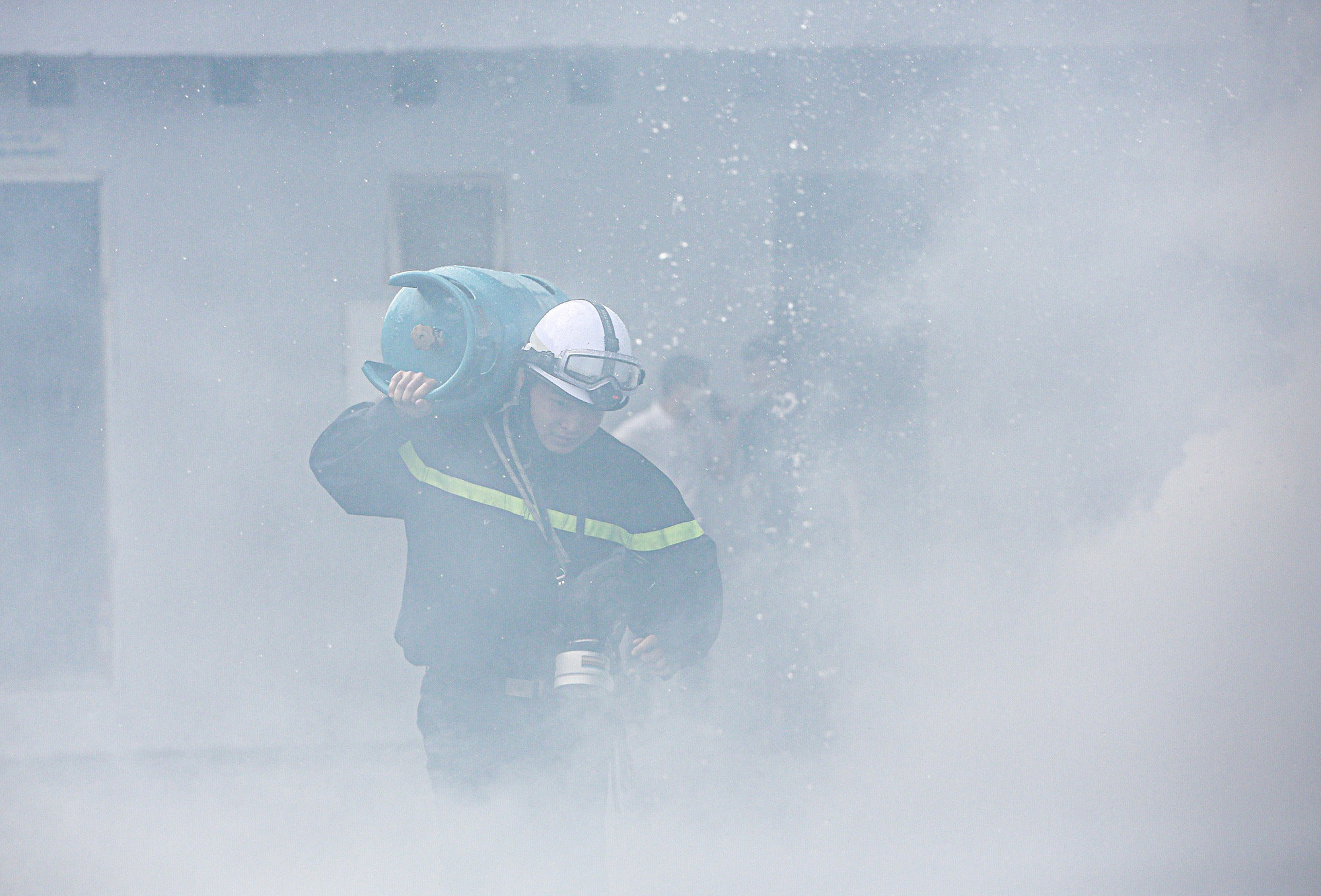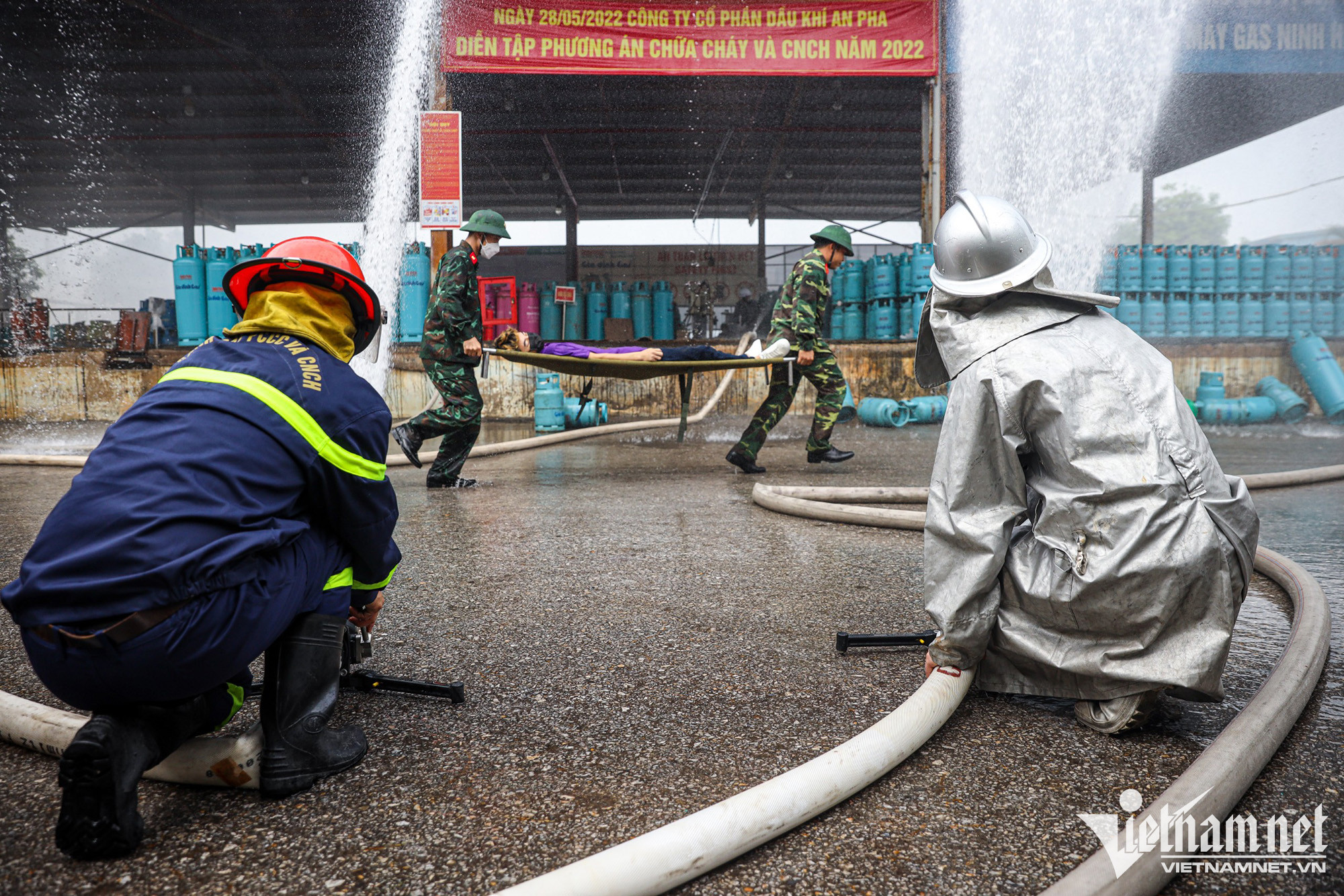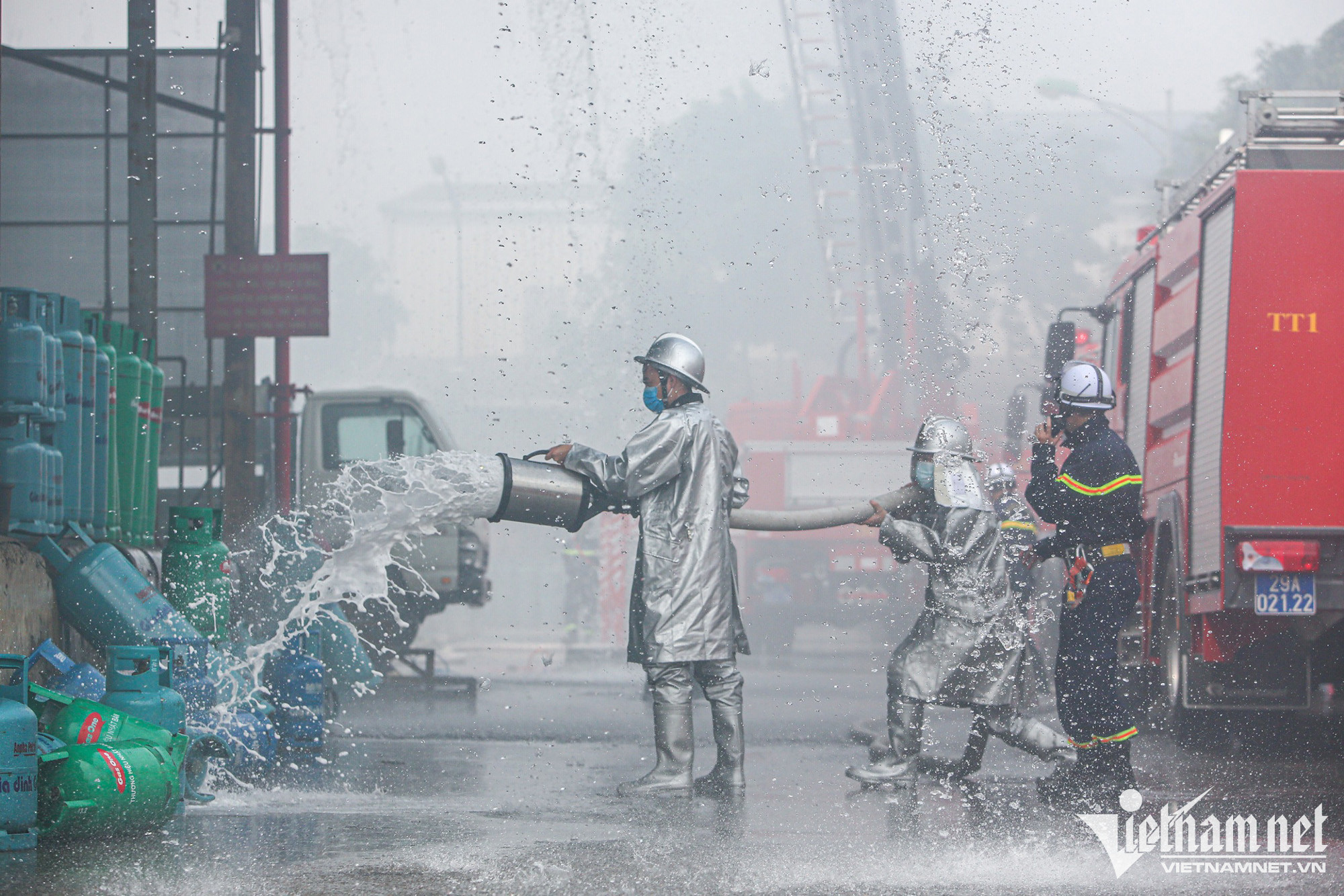 Tình huống giả định được đặt ra khi cháy tại khu vực sàn sang chiết nạp gas của một công ty trong Cụm công nghiệp Ninh Hiệp (xã Ninh Hiệp, huyện Gia Lâm, Hà Nội).