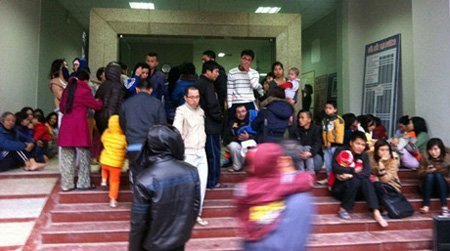 Hàng trăm người dân hoảng hốt chạy xuống sân (Ảnh: ANTĐ) |