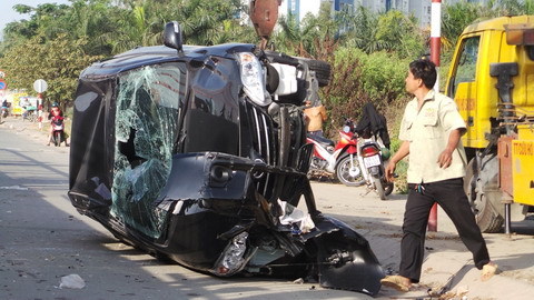 | Xe cứu hộ đến di dời chiếc xe bị nạn |