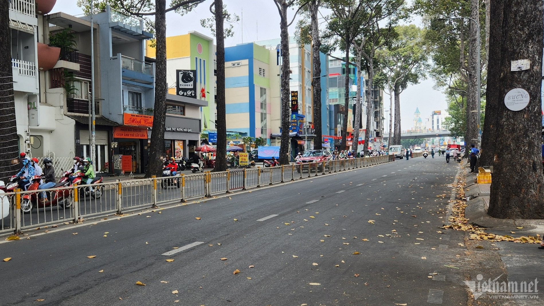 Một đoạn đường Nguyễn Tri Phương được phong tỏa khiến giao thông bị ùn ứ.