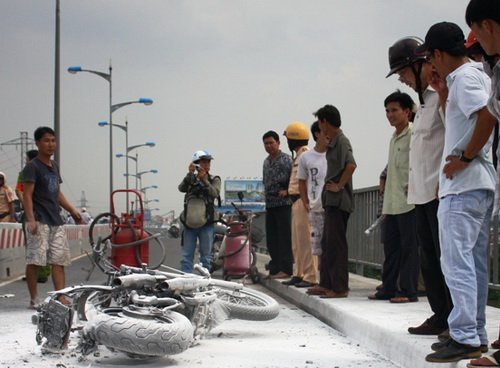 Rất đông xe cùng chiều phải dừng lại gây ra kẹt xe nghiêm trọng trên cầu. Rất may không có thương vong nào xảy ra.