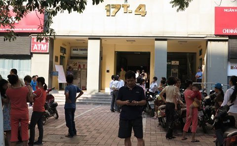 | Người dân lo lắng tháo chạy xuống tầng 1 của tòa nhà. |