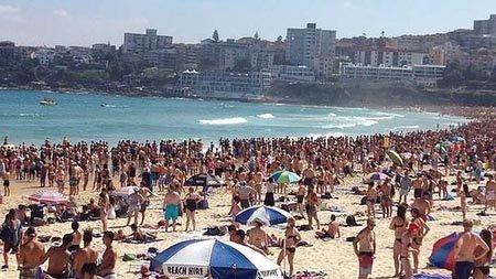 Hàng ngàn du khách tại bãi biển Bondi ở Sydney (Australia) đã chạy tới nơi an toàn sau khi tiếng còi báo động cá mập vang lên trong ngày đầu năm.