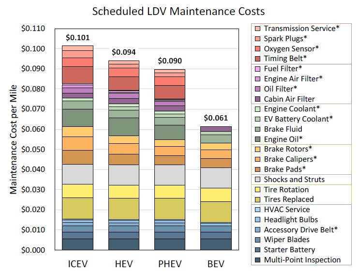 Ngoài ra, ô tô điện còn có ưu thế hơn hẳn về việc tiết kiệm các chi phí bắt buộc khác như bảo dưỡng, sửa chữa, thay thế phụ tùng…, do xe điện có kết cấu đơn giản hơn xe xăng. Số liệu từ Văn phòng Hiệu suất năng lượng và Năng lượng tái tạo Mỹ (EERE) chỉ ra, chi phí bảo dưỡng xe điện tiết kiệm hơn tới 40% so với xe sử dụng động cơ đốt trong.