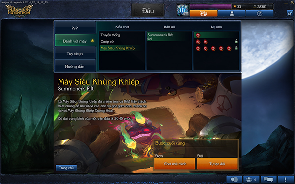 Như đã giới thiệu từ trước, "Máy siêu khủng khiếp" là 1 trong những chế độ chơi đặc trưng của Liên Minh Huyền Thoại. Ở chế độ này, người chơi sẽ chung vai sát cánh, chiến đấu chống lại những tướng “máy” với các kĩ năng đã được cường hóa rất khủng khiếp.