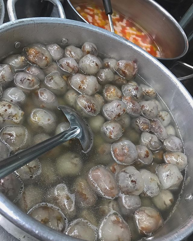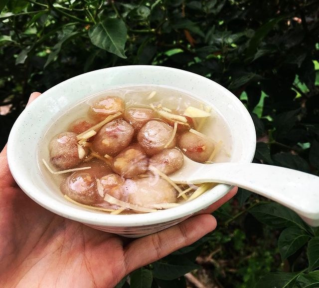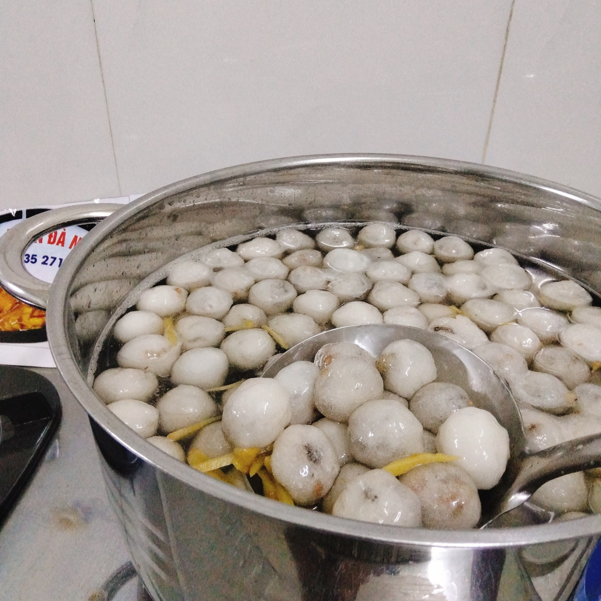 Đun vài phút, thấy viên bột chín dần, chuyển màu trong và nổi lên thì vớt ra. Tùy vào khẩu vị và sở thích từng nơi mà người ta còn cho thêm gừng và lá nếp (lá dứa) vào hỗn hợp nước đường, giúp món chè dậy mùi thơm hấp dẫn.