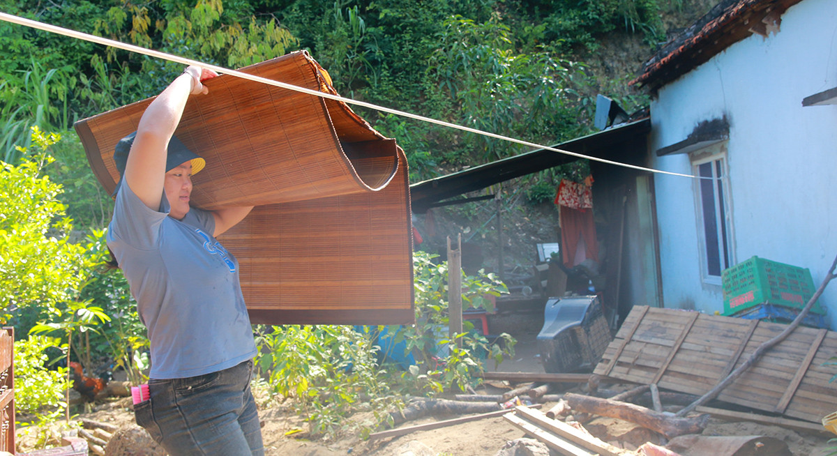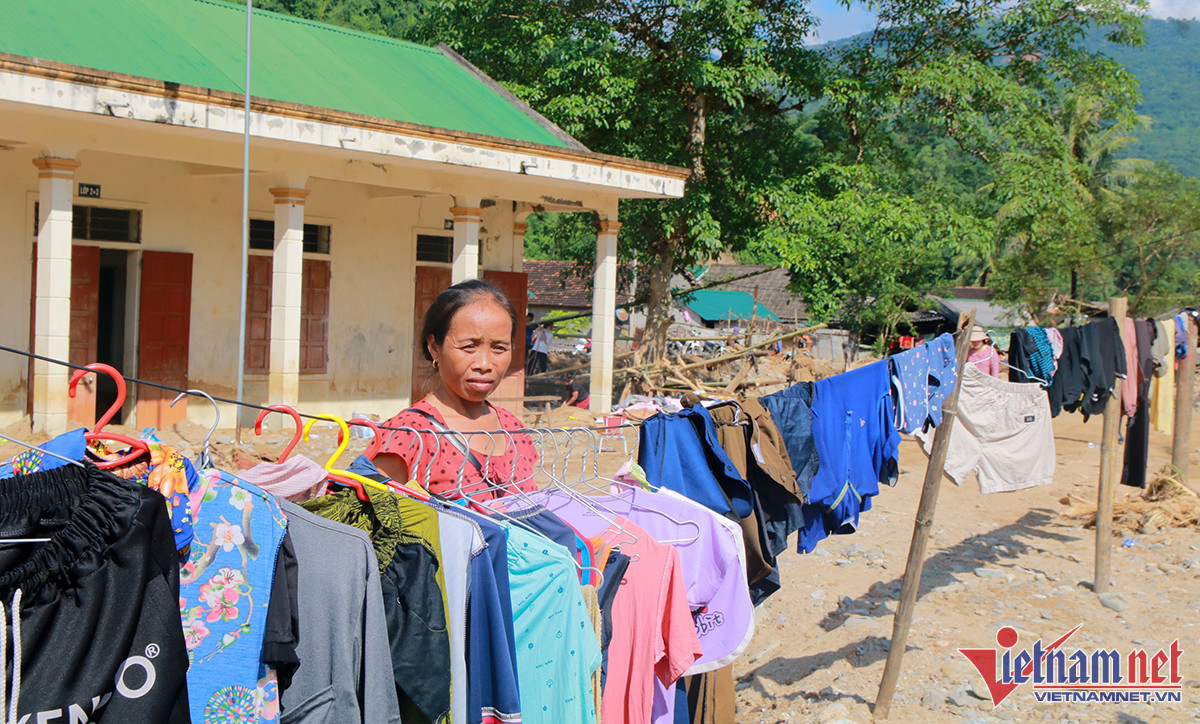 “Hôm nay thời tiết nắng ráo, tôi mang đống quần áo lấm bùn đất ra khe giặt rồi đưa ra bãi đất trống trước nhà văn hoá phơi. Biết rằng phía trước còn nhiều khó khăn, nhưng mình phải cố gắng vượt qua”, chị Dung bày tỏ.