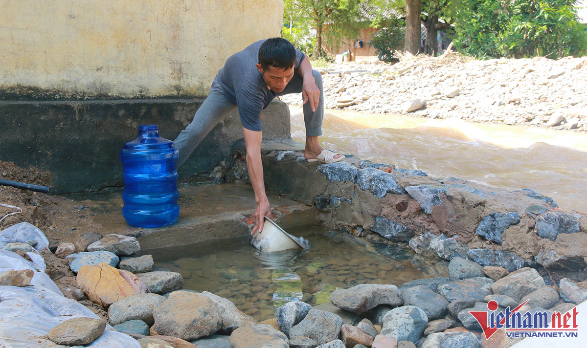 “Nước từ khe Huồi Giảng chảy vào bên trong trường học, được lọc qua lớp đất cát hôm lũ kéo vào phòng rồi theo đó chảy ra. Dân bản chúng tôi đắp đá xung quanh thành vũng nước nhỏ. Nước nhìn khá trong nên chúng tôi lấy về dùng tắm rửa, giặt giũ”, anh Mai nói.