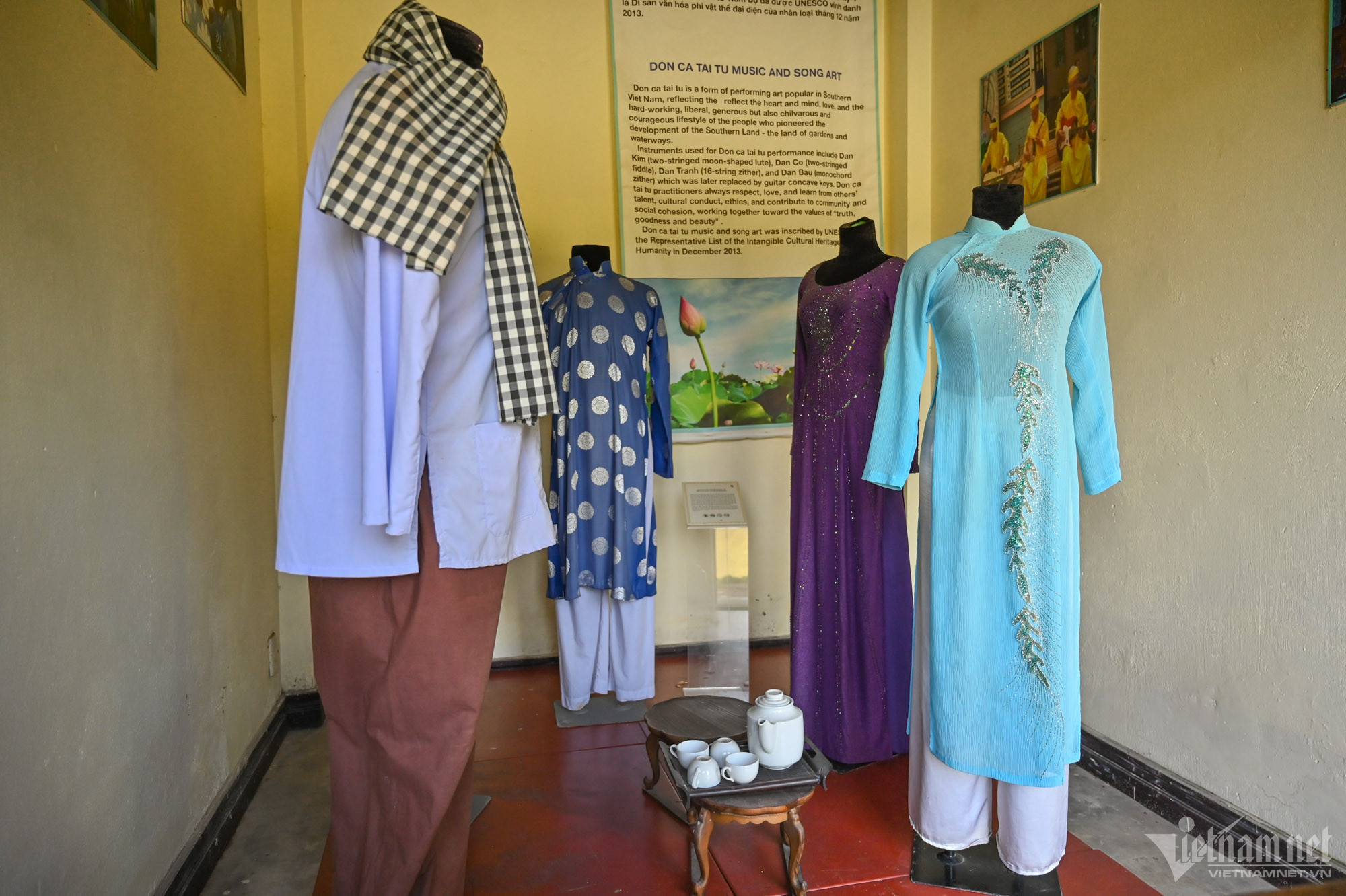 Mỗi căn phòng trong căn nhà nhỏ này đều trưng bày áo dài của các Di sản văn hoá phi vật thể do UNESCO vinh danh như quan họ, hát xoan, ví dặm, đờn ca tài tử.