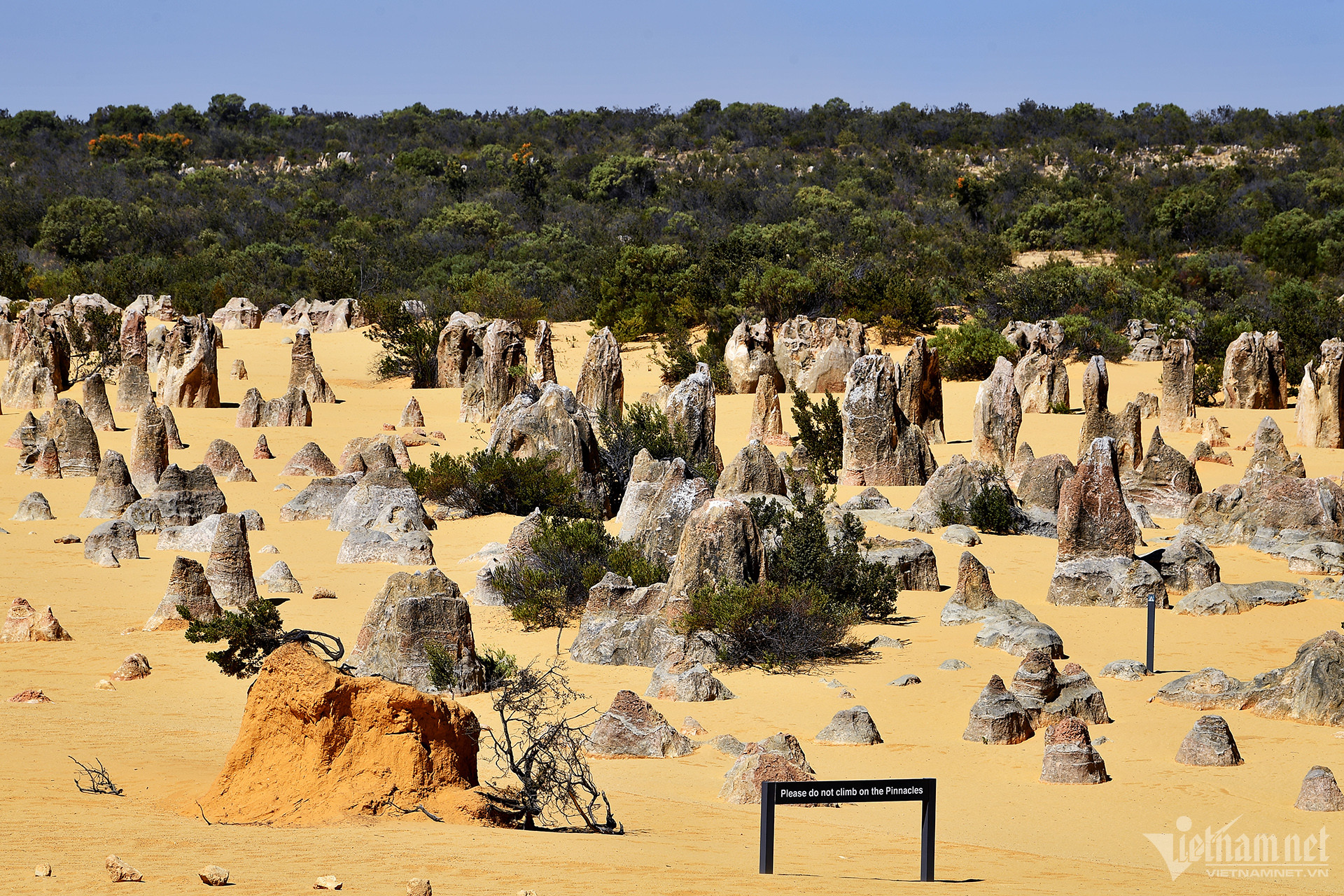 Công viên quốc gia Nambung, Australia có một bãi cát với hàng nghìn cột đá vôi phong hóa nhô lên được gọi là sa mạc Pinnacles, thu hút nhiều du khách tới vui chơi mỗi ngày.
