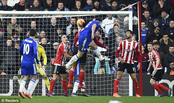 Sau tình huống phạt góc, khung thành Chelsea chao đảo. Thủ thành Courtois cùng với Cahill phải lăn xả để giải nguy cho đội khách.