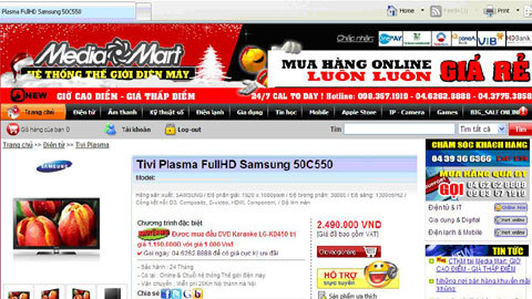 Ngày 26/11/2010 anh Hoàng Vạn Tuế ở Long Biên, Hà Nội vào website bán hàng trực tuyến http://www.mediamart.vn của Công ty CP Mediamart Việt Nam, tại đây có thông tin chào bán tivi Samsung Plasma Full HD 50C550, giá niêm yết 2,49 triệu đồng và các thông tin khác liên quan đến sản phẩm.