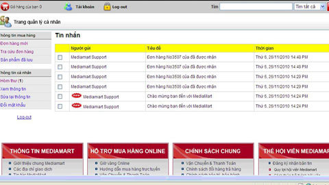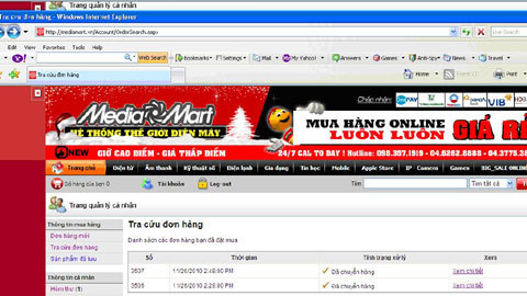 Xác nhận các đơn hàng mà anh Tuệ đặt của Mediamart